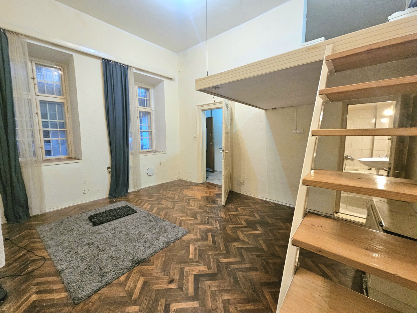 A jelenlegi elrendezés előszobát, konyhát, világos nappalit, kádas fürdőszobát, valamint a galérián egy kényelmes hálószobát és gardróbot foglal magában. Az udvaron lehetőség nyílik egy hangulatos, privát kis terasz kialakítására is – valódi ritkaság a belvárosban.